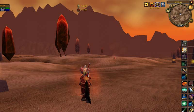 I headed south along the road through Silithus, taking in the strange landscape. When I spotted the red crystal-like rock fomation, I knew I was in the right area.