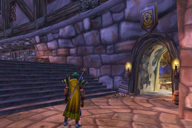 You now find yourself inside the Keep. To the left is a barred view of the courtyard. To the right is the arched doorway through which you now need to go.