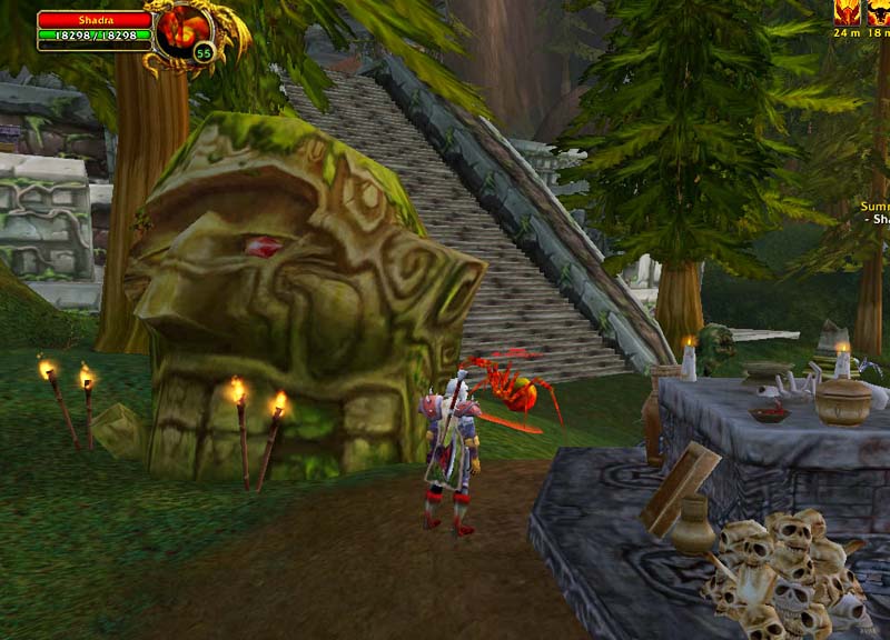 Once you have read the scroll, look for the big, red spider. Shadra has arrived.