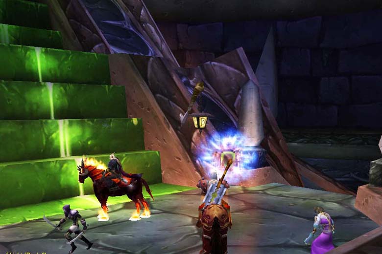 You're at level 58 or so, you've got the Burning Crusade installed, and you're ready to head to Outland. How do you get there? One way is to travel by land to the Blasted Lands and find the portal. The quickest way is to find the portal to the Blasted Lands. These are in the major cities near the portal trainers. The picture here is the portal in the Undercity. Once you find the portal, right-click on it